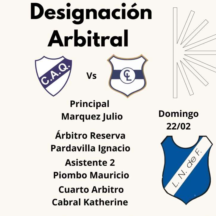 A partir de las 17,30 h se jugará en cancha violeta, el encuentro entre Atlético Quiroga y Football Club Libertad.