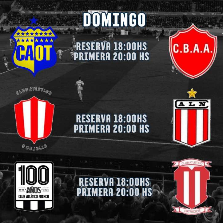 Cerrando la fecha, el último partido de las 20 h es del Atlético French enfrentando al Club atlético Patricios en el Alberto Dehenen.