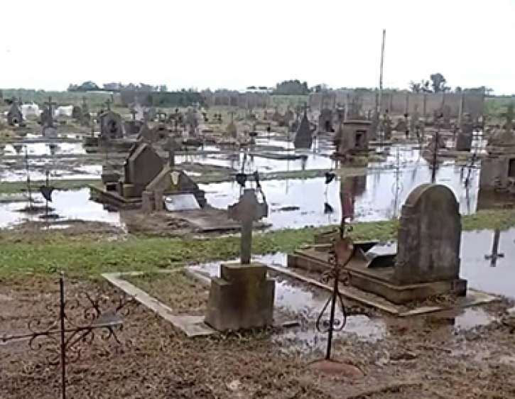 Los habitantes de la localidad de French manifestaron su preocupación por la situación que atraviesa el cementerio del pueblo, que se encuentra inundado y con acumulación de agua.