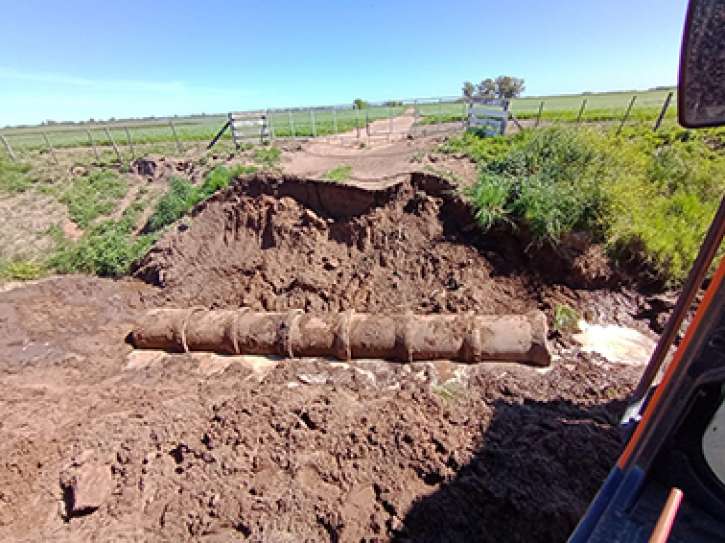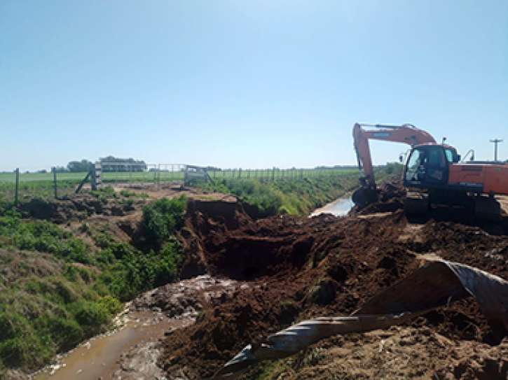 La Municipalidad de Nueve de Julio, a través de la secretaría de Obras y Servicios Públicos, continúa desarrollando una intensa tarea de reconstrucción de los distintos caminos del distrito y limpiando canales para el escurrimiento efectivo del agua, en el contexto de emergencia hídrica.