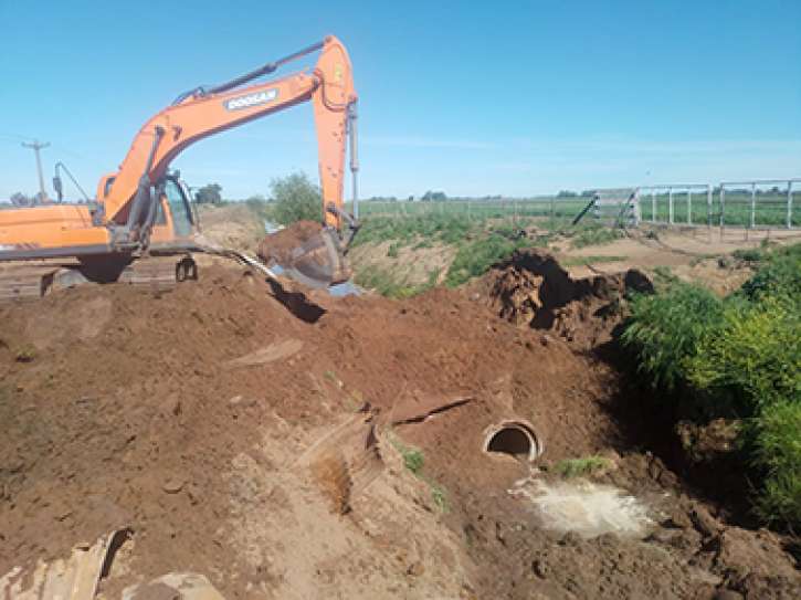 LA NIÑA: Limpieza de Canal hacia Quiroga y trabajos sobre el acceso (P-3); colocación de tubos en caminos T-10 y T-215 junto a la Dirección de Vialidad de la Provincia.