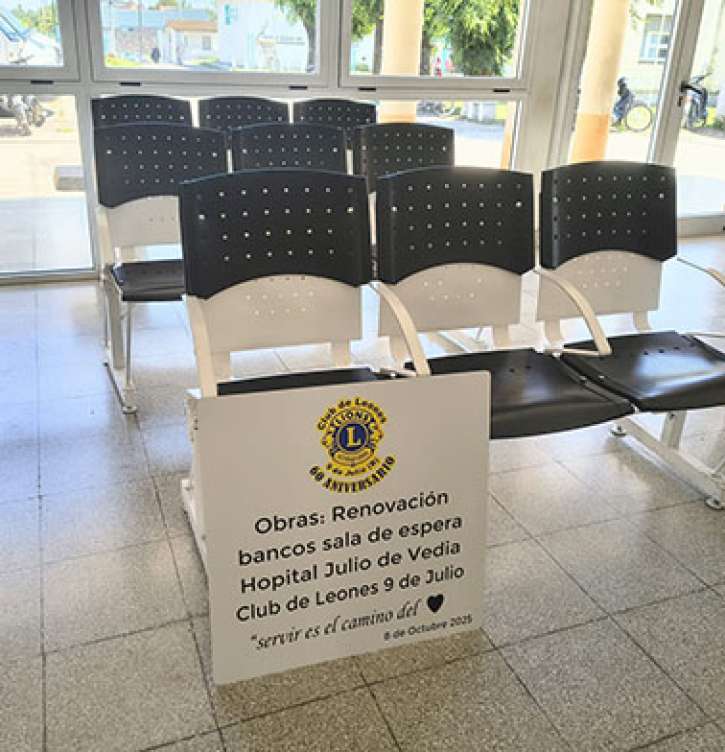 Días pasados, integrantes del Club de Leones de 9 de Julio visitaron el Hospital Julio de Vedia para entregar formalmente, junto al director de la institución, los bancos restaurados destinados a la sala de espera de la guardia del nosocomio.